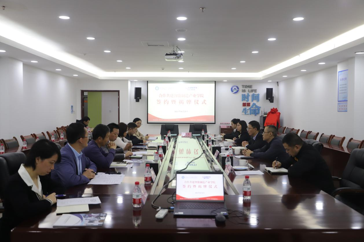 公司党委副书记、总经理衡德超与学校党委副书记、董事长张东旭代表双方签订“合作共建智能制造产业学院协议”并为智能制造产业学院揭牌。