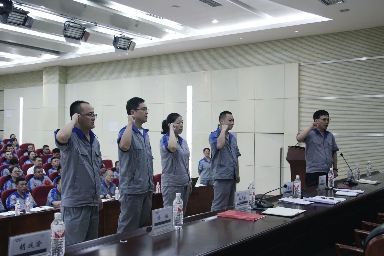 ▲ 2023年以来新发展党员,在党委书记、董事长刘德永的领誓下,面向党旗庄严宣誓。