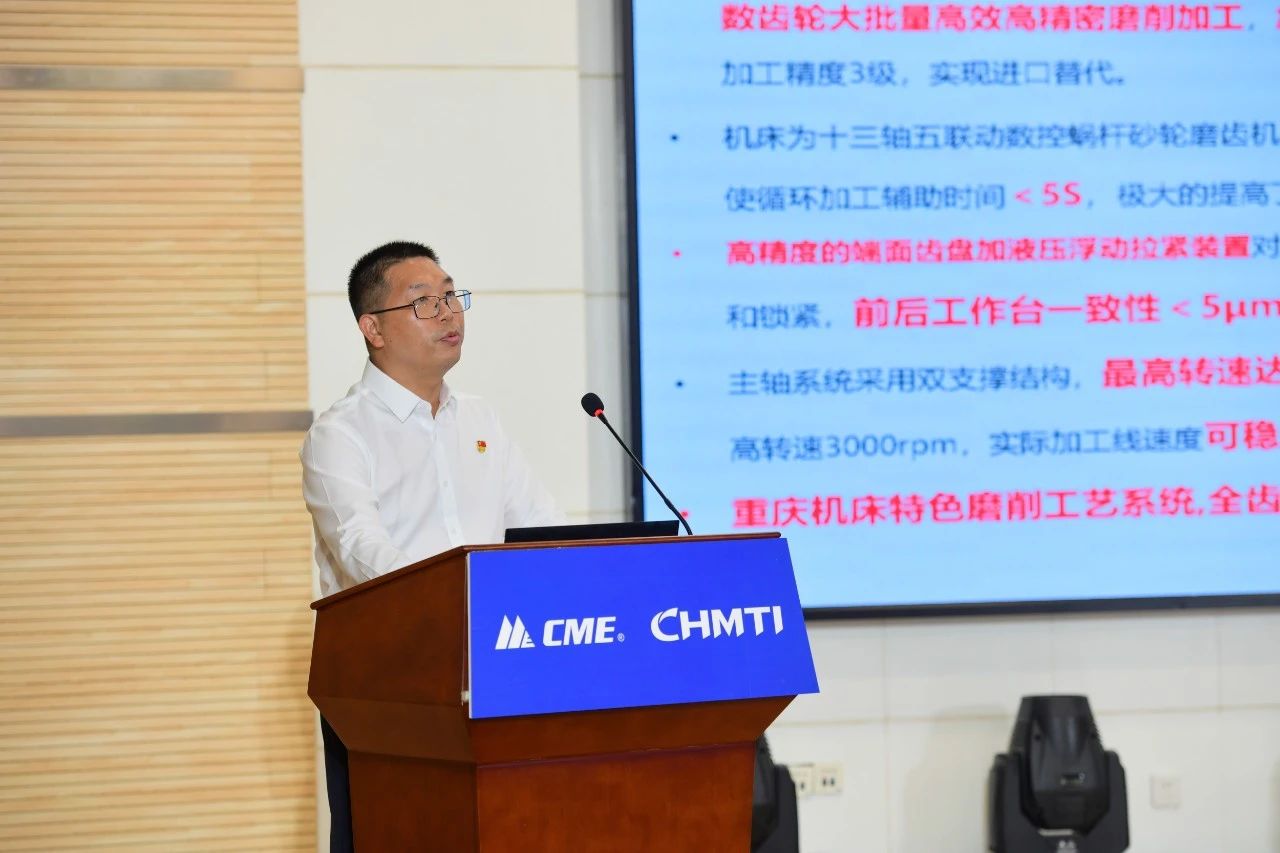 重庆世玛德智能制造有限公司常务副总经理李博,推介了重点新产品——齿轮加工智能柔性生产线。