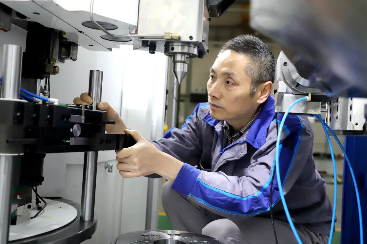 “在关键时刻老同志就应该站出来。”在磨齿机车间54岁的黄勇涛师傅语气坚定地表示。黄师傅精于齿轮机床分度轴装配技艺,尤其善于直驱工件轴的装配过程控制、精密轴承、光栅鼓等精密件的精度实现。为确保产能量最大释放,他毫不犹豫地站了出来,与罗安程师傅一起带领新入职技能员工,加入新成立的磨齿机装配机组,以老带新,言传身教,在生产过程中发现和培养一线员工的潜力,提升团队整体的技术水平及生产效能,为旺季生产赢得宝贵时间。